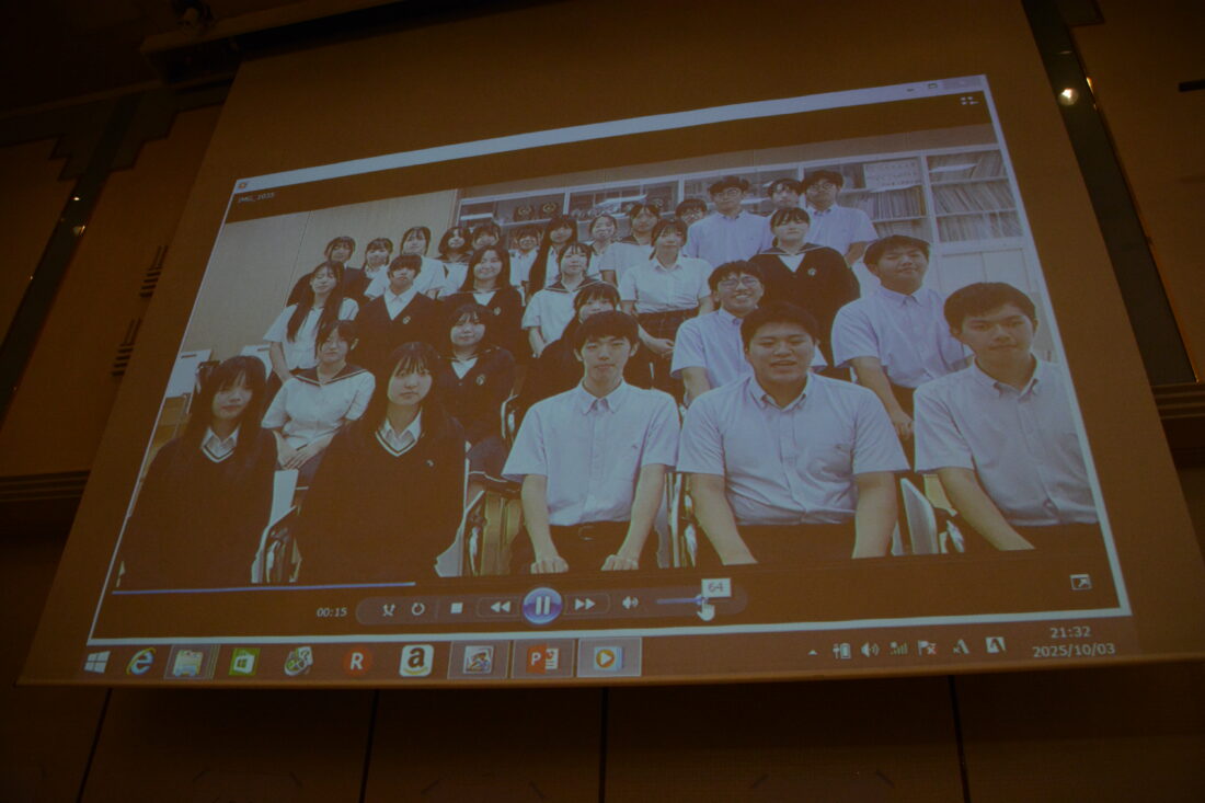 最後に、合唱部の動画に合わせて全員で学生歌を合唱し、本校教員の宗像忠典先生の発声で万歳三唱が行われ、70年の歩みを胸に、新たな一歩を踏み出す節目の会が温かく締めくくられました。